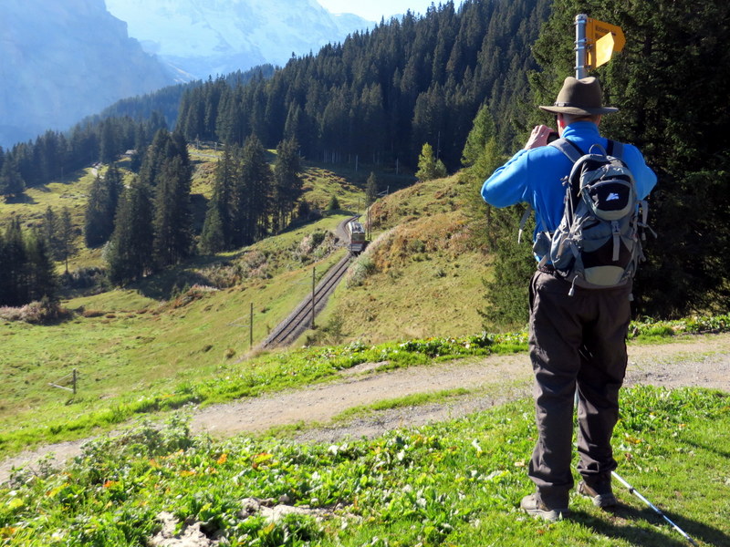 Ric waits for the little train headed to Grutschalp.