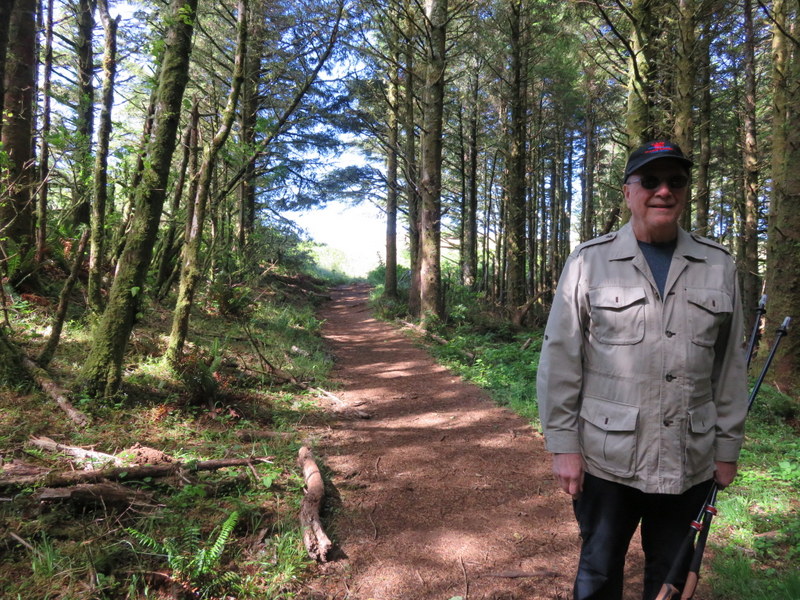 Ric near the top where trees give way to meadow. Trekking sticks no necessary.
