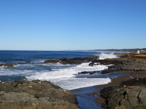 Yachats is a cute little town with a great coffee shop (See Cape Perpetua posted recently), the Green Salmon. Once fortified, we made our way to Smelt Sands. This is not a hike so much as a paved walkway along a very scenic stretch made more so when tides are high and the spouting horns (of which Oregon has many) threaten to drench walkers. It wasn’t dangerous the day we went, but people have been swept off the rocks and out to sea, never to be seen again.