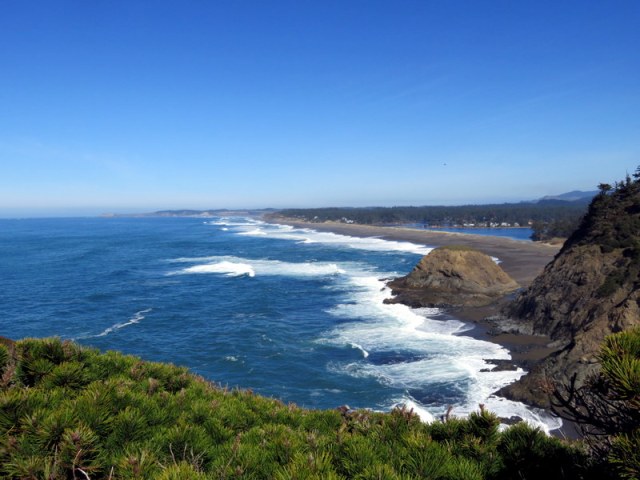 Walking brings hunger and we satiated that at Redfish with a gorgeous view south along the coast at Battle Rock Wayside Park. Outdoor dining was an option, but a breeze kept us inside where our fish tacos would not get cold.